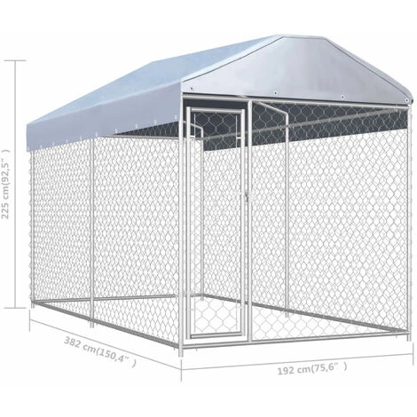 Ce chenil polyvalent pour chiens a de multiples utilisations : jeu, exercice, dressage ou tout simplement protection de vos chiens. Ce sera le paradis de jeu parfait pour votre compagnon à quatre pattes ! Ce grand chenil pour chiens offre amplement d’espace pour faire de l’exercice, tandis que le maillage en mailles tout autour aide à prévenir les méfaits et les accidents inattendus, tout en permettant la ventilation. Grâce à la construction en acier galvanisé solide et robuste, ce chenil pour chiens est durable et construit pour durer. Le toit supérieur inclus, fait de 100 % polyéthylène, est ignifuge et protégé contre les rayons UV, offrant une protection contre le soleil, la pluie, la neige et d’autres conditions météorologiques. La porte à charnière assure une sécurité supplémentaire pour vos chiens grâce au système de loquet de verrouillage. L’assemblage est facile.