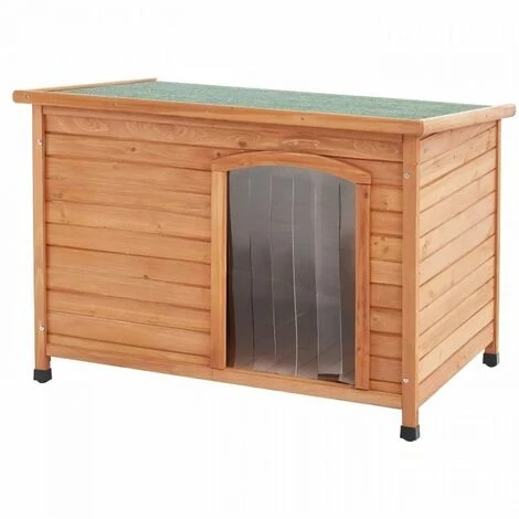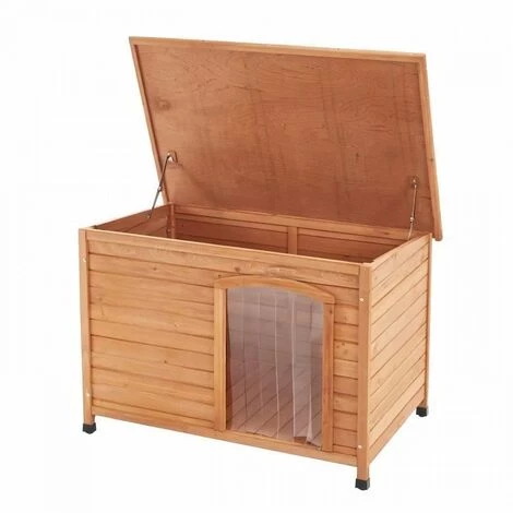 Niche en sapin – Rideau en PVC – 4 pieds en plastique – Dimensions totale : 104x66x70cm – Coloris : bois – Pour chien.