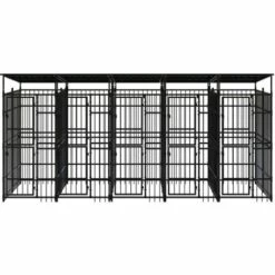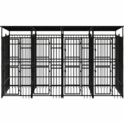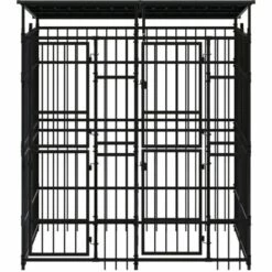VidaXL Chenil D’extérieur Avec Toit Pour Chiens Acier 7,37 M² – Noir