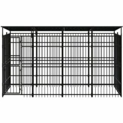 VidaXL Chenil D’extérieur Avec Toit Pour Chiens Acier 9,22 M² – Noir