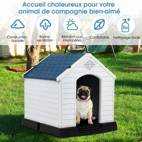 | Cette niche pour chien est parfaite pour que vos compagnons jouent, se détendent, prennent le soleil, dorment afin qu’il puisse profiter pleinement des activité extérieures. | Fabriqué en PP solide, cette niche est durable et stable pour une utilisation long terme. Sa conception imperméable et son sol surélevé protège votre chien de la pluie, la neige ou du vent. | De plus, le chenil pour animaux de compagnie est bien ventilé pour permettre à l’air de circuler afin que votre chien reste au frais l’été et au chaud l’hiver. C’est léger et facilement transportable. Le toit est amovible pour le nettoyer de temps en temps et éviter qu’il moisisse. |