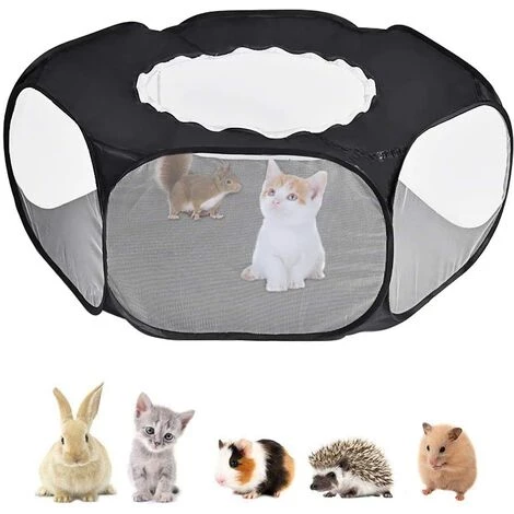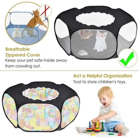 Transparent et respirant — La cage pliable pour animaux de compagnie est entourée de filets, les animaux domestiques peuvent être observés à tout moment et ces petits animaux peuvent être vus clairement dans cette cage transparente, ainsi que pour assurer la ventilation du parc et éliminer les odeurs.