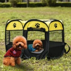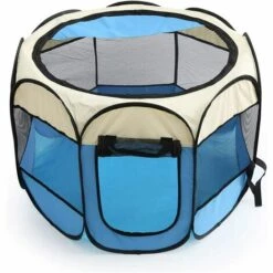 DONTODENT Parc Pour Chien Chat Pliable,125*125*61cm,49cm*61cm*8pcs + 1 Housse De Transport-Bleu