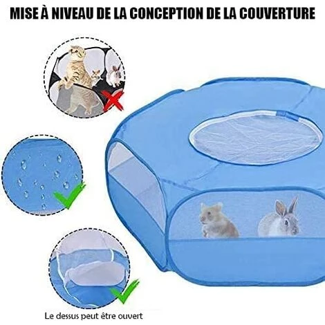 Fei Yu Parc Pour Petit Animal Avec Housse – Cage Pliable Et Portable – Imperméable – Respirant – Pour Lapin, écureuil, Chaton, Chiot, Chinchilla Et Hérisson – Bleu
