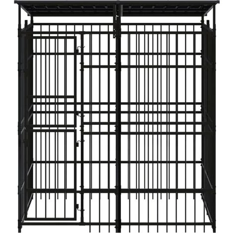 Ce chenil polyvalent pour chiens a de multiples utilisations : jeu, exercice, dressage ou tout simplement protection de votre chien. Ce sera le paradis de jeu parfait pour votre compagnon à quatre pattes ! Ce chenil pour chien offre un grand espace d’exercice. Les murs en barres d’acier permettent d’éviter les méfaits et les accidents inattendus tout en permettant la ventilation. Grâce à la construction robuste en acier enduit de poudre, ce chenil pour chien est durable et conçu pour durer. Le toit offre une protection contre le soleil, la pluie, la neige, ainsi que d’autres conditions météorologiques. La porte à charnières avec un système de loquet verrouillable assure une sécurité supplémentaire à vos chiens.
