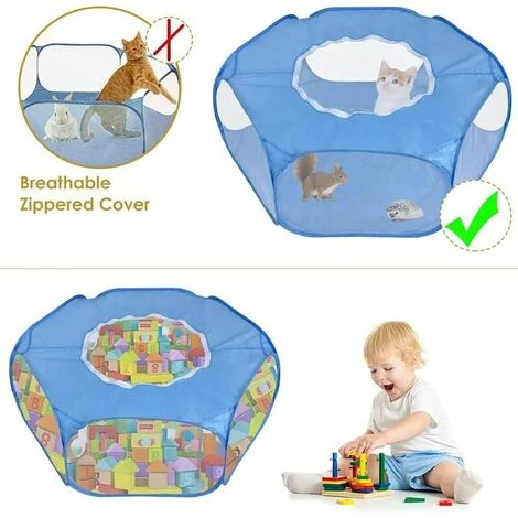 FOZIY Parc Pour Petits Animaux, Ten Te Cage Pour Animaux Compagnie, Parc à Animaux Pliable, Parc Petits Animaux, Avec Couvercle Supérieur Anti évasion, Pour Chaton Lapins Lapin Hamster Chinchillas (Bleu),Fonepro