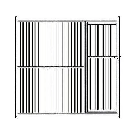 Panneau avant pour chenil galvanis_ avec cadre de tube renforc_ de 30 mm x 30 mm et 16 mm de diamtre s_par_ š 5 cm. Comprend la porte pour pouvoir acc_der au chenil. Produit de qualit_ fabriqu_ en Espagne. Mesures: 200 cm x 3 cm x 195 cm