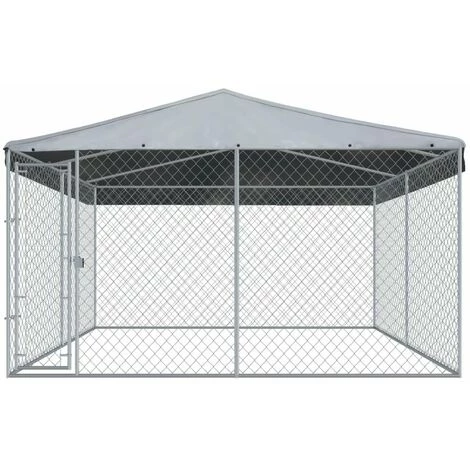 Ce chenil polyvalent pour chiens a de multiples utilisations : jeu, exercice, dressage ou tout simplement protection de vos chiens. Ce sera le paradis de jeu parfait pour votre compagnon à quatre pattes ! Ce grand chenil pour chiens offre amplement d’espace pour faire de l’exercice, tandis que le maillage en mailles tout autour aide à prévenir les méfaits et les accidents inattendus, tout en permettant la ventilation. Grâce à la construction en acier galvanisé solide et robuste, ce chenil pour chiens est durable et construit pour durer. Le toit supérieur inclus, fait de 100 % polyéthylène, est ignifuge et protégé contre les rayons UV, offrant une protection contre le soleil, la pluie, la neige et d’autres conditions météorologiques. La porte à charnière assure une sécurité supplémentaire pour vos chiens grâce au système de loquet de verrouillage. L’assemblage est facile.