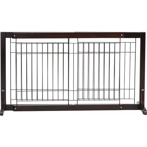 Présentation produit: Barrière de sécurité pour animaux barrière modulable pliable en bois de pin 97-161 x 32 x 53 cm