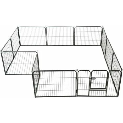 Notre parc polyvalent est idéal pour que vos chiens jouent, s’entraînent, fassent des exercices ou tout simplement pour les protéger. Ce sera le paradis de jeu parfait pour vos amis à fourrure ! Ce chenil de chiens peut être facilement mis en place ou démonté. Il se compose de 12 panneaux robustes et chaque panneau peut être facilement attaché au suivant, ce qui vous permet de configurer le parc en différentes formes. L’enclos pour chiens comporte une porte à charnière avec un loquet de sécurité pour un accès facile. Ce parc pour chiens, durable et résistant aux intempéries, est en acier antirouille enduit de poudre, ce qui le rend idéal pour une utilisation à l’extérieur et à l’intérieur. Les piquets de sol inclus aident à sécuriser le parc d’extérieur pour plus de stabilité et de sécurité.