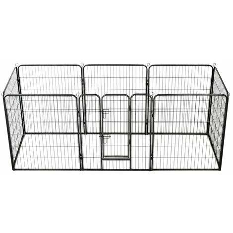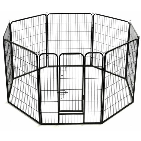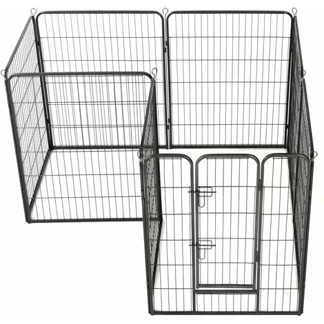Notre parc polyvalent est idéal pour que vos chiens jouent, s’entraînent, fassent des exercices ou tout simplement pour les protéger. Ce sera le paradis de jeu parfait pour vos amis à fourrure ! Ce chenil de chiens peut être facilement mis en place ou démonté. Il se compose de 8 panneaux robustes et chaque panneau peut être facilement attaché au suivant, ce qui vous permet de configurer le parc en différentes formes. L’enclos pour chiens comporte une porte à charnière avec loquets de sécurité pour un accès facile. Ce parc pour chiens, durable et résistant aux intempéries, est en acier antirouille enduit de poudre, ce qui le rend idéal pour une utilisation à l’extérieur et à l’intérieur. Les piquets de sol inclus aident à sécuriser le parc d’extérieur pour plus de stabilité et de sécurité.