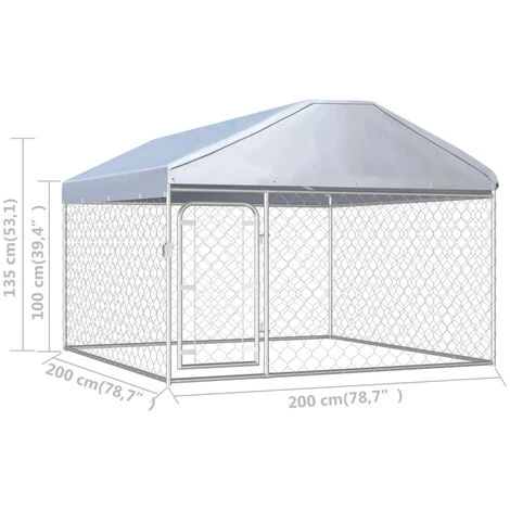 Offrez sûreté, sécurité et confort à votre chiot avec ce chenil d’extérieur. Cette niche polyvalente pour chiens a des multiples utilisations : jeu, exercice, dressage ou tout simplement protection de vos chiens. Ce sera le paradis de jeu parfait pour votre compagnon à quatre pattes ! Ce grand chenil offre un grand espace d’exercice tandis que le maillon de la chaîne tout autour aide à prévenir les dommages et les accidents inattendus tout en permettant la ventilation. Grâce à sa construction en acier galvanisé robuste, ce chenil de qualité est durable et construit pour durer. Fabriqué 100 % en polyéthylène, le toit supérieur inclus est résistant au feu et aux UV, offrant une protection contre le soleil, la pluie, la neige et autres conditions météorologiques. La porte à charnière avec système de verrouillage verrouillable assure une sécurité supplémentaire à vos chiens. Le chenil est facile à assembler. Veuillez noter que la porte peut être installée à gauche ou à droite, selon vos besoins.