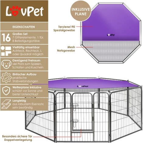 • 1 x parc pour chiots (7 x éléments de grillage sans porte, 1 x élément de grillage avec porte)