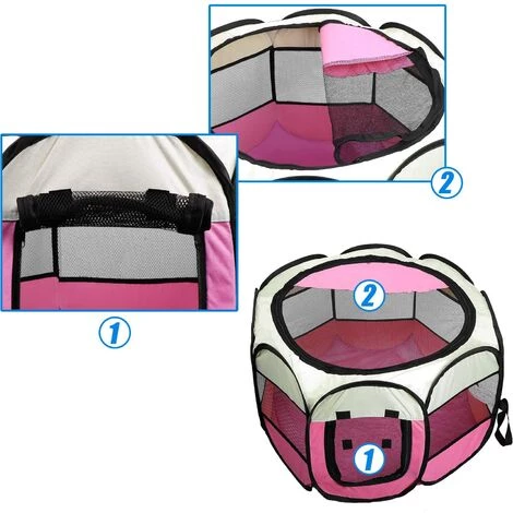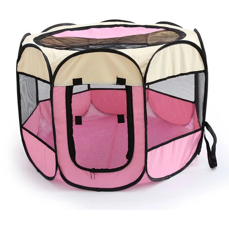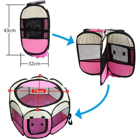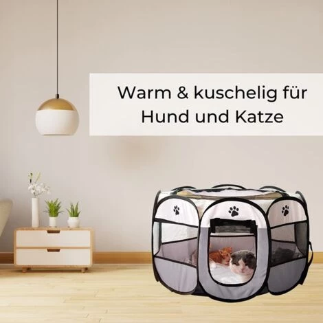 Espace généreux – Grâce à la forme octogonale spéciale, votre chien ou votre chat a beaucoup de place dans le parc, mais peu de place debout. Il y a une porte à l’avant avec une fermeture éclair qui peut y être attachée.