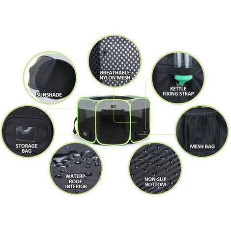 Accessoires: parc chiot* 1, clou au sol * 4 , sac de rangement portable* 1.