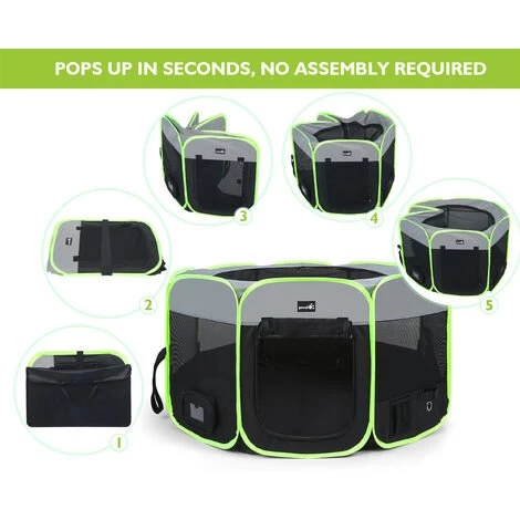 Comment ouvrir ou déplier le parc chiot pliable?–Pas d’outils, pas d’installation, le parc chiot pliable peut être déployé en quelques secondes.