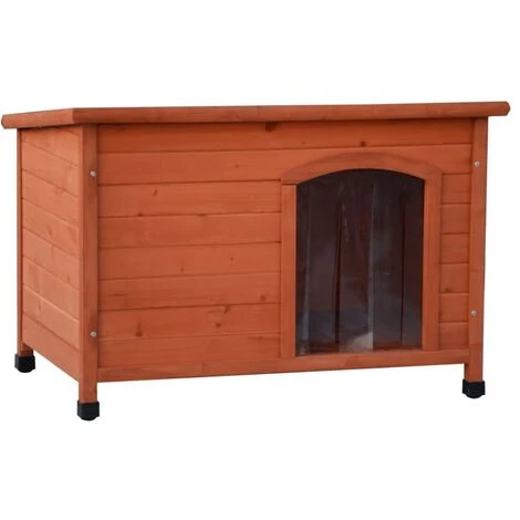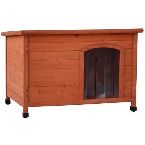 Cette niche pour chiens Bungalow en bois brun robuste de 59 cm de haut de la marque @Pet est un excellent endroit pour que votre chien puisse dormir et se détendre à l’extérieur.