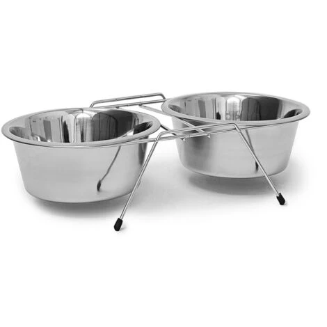 Pour les encas, la gamelle en inox sera là. Vous pouvez donner à la fois de la nourriture et de l’eau à votre animal. Les deux écuelles reposent sur un support avec pieds en caoutchouc. Ainsi la gamelle reste stable et ne glisse pas lorsque votre animal se nourrit.