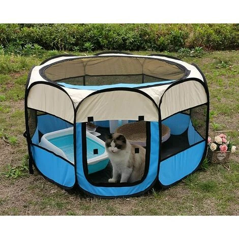 Description du produit Compact et léger : Notre parc pour chien portable se monte et se replie en quelques secondes. Quil sagisse dun pique-nique en plein air ou dune voiture à la maison, il se replie pour ne pas prendre de place et est pratique pour les voyages. Style particulie: Tout le parc est scellé à lexception du haut et une fermeture éclair du panneau peut être ouverte. Les fenêtres en maille à 8 panneaux protègent efficacement contre les moustiques en été. De plus, elles offrent une grande visibilité. Matériau durable: Fabriqué en tissu Oxford 600 D durable, revêtement PVC imperméable et maille de haute qualité solide et extrêmement durable. Cette tente pliante pour animaux est résistante à lusure, aux rayures, aux morsures, griffures et facile à nettoyer. Suffisamment despace: Cette tente est grande et spacieuse(91x91x58cm), vos animaux sy habitueront et même la traiteront comme leur deuxième maison. Vous pouvez personnaliser les tentes de vos animaux de compagnie en ajoutant des couvertures, des jouets à mâcher, etc. Garantie du client: Nous sommes très heureux de fournir un service à la clientèle amical si vous avez des problèmes de produit. Votre satisfaction est notre priorité. Sil y a des problèmes avec les produits, veuillez nous contacter à tout moment et nous vous aiderons à les résoudre le plus rapidement possible. Avez-vous encore du mal à trouver un espace pour que votre animal puisse jouer et se reposer à lintérieur ou à lextérieur ? Voici le choix parfait pour votre amis les plus fidèles. Notre parc pour chien portable pliable en tissu oxford résistant aux rayures avec 8 panneaux de maille respirante vous permet demporter facilement votre animal de compagnie partout où vous allez. Parfait pour jouer, faire de lexercice, sentraîner et se reposer à la maison ou à lextérieur. Objets applicables : chats, chiens, lapins, hamsters, etc. Avantages principals Fabriqué en tissu Oxford 600 D durable et revêtement PVC imperméable, résistant aux rayures, à labrasion, et à lhumidité et imperméable, durable et confortable. Pliable et facile à ranger. Quil sagisse dun pique-nique en plein air ou dune voiture à la maison, il se replie pour ne pas prendre de place et est pratique pour les voyages. Les fenêtres grillagées couvertes efficacement contre les moustiques offrent une meilleure ventilation sur tous les côtés et une grande interaction. Offrez à votre animal un espace chaleureux et confortable qui lui appartient Peut sortir comme tente pour éviter les piqûres de moustiques Lorsque toute la famille sort pour les pique-niques, les sorties printanières et dautres activités, préparez un nid pour votre animal de compagnie, il se replie pour ne pas prendre de place et est pratique pour les voyages. Espace pour les mamans des animaux domestiques Une petite maison chaude et confortable pour les mamans et les bébés après laccouchement, donnant à votre animal un sentiment de sécurité. Espace de livraison pour animaux de compagnie, soins pour les nouveau-nés, répond à la sécurité de lenvironnement de lanimal pendant la grossesse et laccouchement. La pièce convalescente où lanimal de compagnie a récupéré dune grave maladie Un petit nid entièrement fermé, donnant à votre animal un environnement de convalescence calme et chaud. Caractéristiques Matériel: tissu Oxford 600 D et revêtement PVC étanche Dimensions: 91 x 91 x 58cm Couleur: blanc+bleu Poids: 1,2kg Conseils Lors de la première utilisation, ne placez pas votre bébé directement à lintérieur, il pourrait facilement se sentir en danger. Vous pouvez ouvrir les portes et y placer des objets familiers. Vous pouvez également rester avec eux pendant un petit moment.