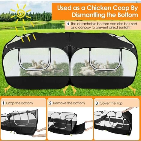 1. Nouvelle tente pour animaux de compagnie améliorée : le fond de la cage du lapin peut être retiré et utilisé comme pare-soleil sur le dessus de la cage pour fournir une protection solaire supplémentaire.