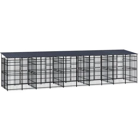 Ce chenil polyvalent pour chiens a de multiples utilisations : jeu, exercice, dressage ou tout simplement protection de votre chien. Ce sera le paradis de jeu parfait pour votre compagnon à quatre pattes ! Ce chenil pour chien offre un grand espace d’exercice. Les murs en barres d’acier permettent d’éviter les méfaits et les accidents inattendus tout en permettant la ventilation. Grâce à la construction robuste en acier enduit de poudre, ce chenil pour chien est durable et conçu pour durer. Le toit offre une protection contre le soleil, la pluie, la neige, ainsi que d’autres conditions météorologiques. La porte à charnières avec un système de loquet verrouillable assure une sécurité supplémentaire à vos chiens.