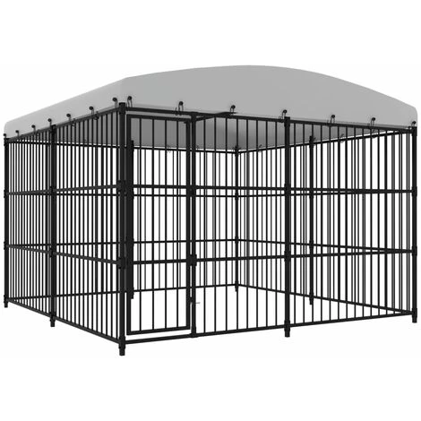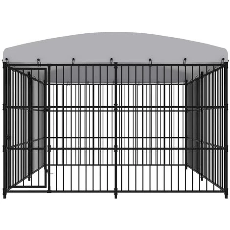 Offrez sûreté, sécurité et confort à votre chiot avec ce chenil d’extérieur. Cette niche pour chien polyvalente et robuste offre de multiples usages : jouer, faire de l’exercice, dresser ou simplement garder votre chien en sécurité. Ce sera le paradis du jeu parfait pour vos amis à fourrure ! Ce chenil offre un grand espace d’exercice tandis que les parois en barres d’acier aident à prévenir les méfaits et les accidents inattendus tout en permettant la ventilation. Grâce à la construction en acier robuste en revêtement en poudre, ce chenil de chien de qualité est durable et construit pour durer. L’auvent supérieur inclus est résistant aux intempéries, ce qui offrira une bonne protection contre le soleil et la pluie. De plus, la porte à charnière a un système de verrouillage verrouillable qui assure une sécurité supplémentaire pour vos chiens. Ce chenil est facile à assembler.