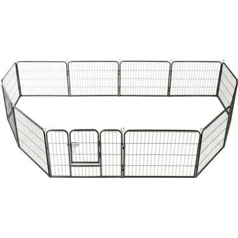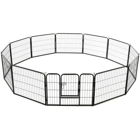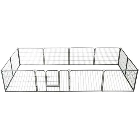 Notre parc polyvalent est idéal pour que vos chiens jouent, s’entraînent, fassent des exercices ou tout simplement pour les protéger. Ce sera le paradis de jeu parfait pour vos amis à fourrure ! Ce chenil de chiens peut être facilement mis en place ou démonté. Il se compose de 12 panneaux robustes et chaque panneau peut être facilement attaché au suivant, ce qui vous permet de configurer le parc en différentes formes. L’enclos pour chiens comporte une porte à charnière avec un loquet de sécurité pour un accès facile. Ce parc pour chiens, durable et résistant aux intempéries, est en acier antirouille enduit de poudre, ce qui le rend idéal pour une utilisation à l’extérieur et à l’intérieur. Les piquets de sol inclus aident à sécuriser le parc d’extérieur pour plus de stabilité et de sécurité.
