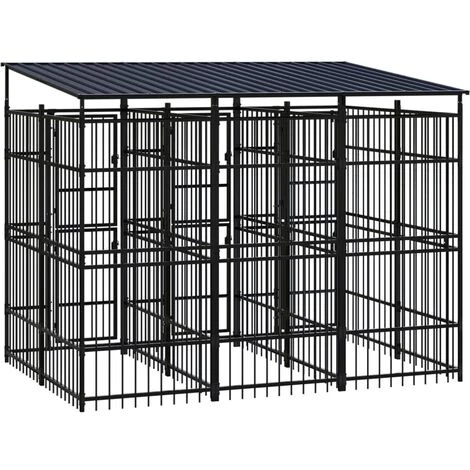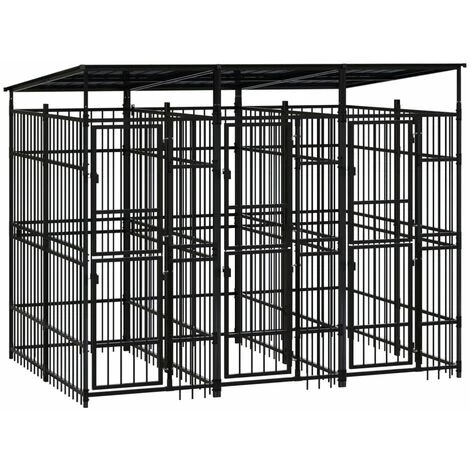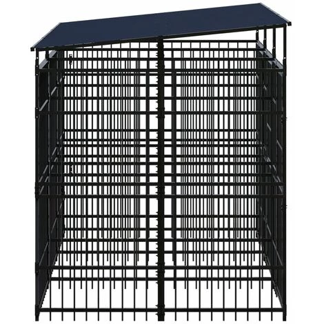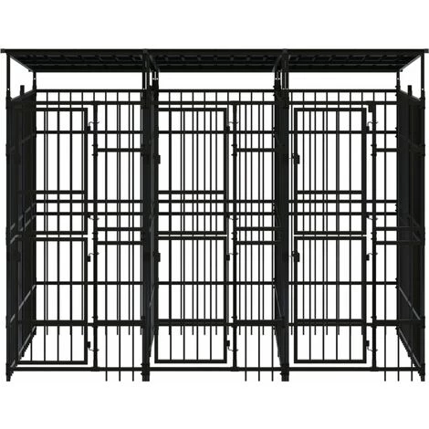 Ce chenil pour chien offre un grand espace d’exercice. Les murs en barres d’acier permettent d’éviter les méfaits et les accidents inattendus tout en permettant la ventilation. Grâce à la construction robuste en acier enduit de poudre, ce chenil pour chien est durable et conçu pour durer. Le toit offre une protection contre le soleil, la pluie, la neige, ainsi que d’autres conditions météorologiques. La porte à charnières avec un système de loquet verrouillable assure une sécurité supplémentaire à vos chiens.