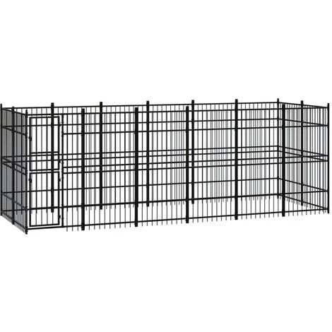 Ce chenil pour chien offre un grand espace d’exercice. Les murs en barres d’acier permettent d’éviter les méfaits et les accidents inattendus tout en permettant la ventilation. Grâce à la construction robuste en acier enduit de poudre, ce chenil pour chien est durable et conçu pour durer. La porte à charnières avec un système de loquet verrouillable assure une sécurité supplémentaire à vos chiens.