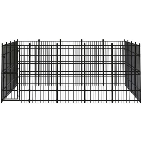 Ce chenil pour chien offre un grand espace d’exercice. Les murs en barres d’acier permettent d’éviter les méfaits et les accidents inattendus tout en permettant la ventilation. Grâce à la construction robuste en acier enduit de poudre, ce chenil pour chien est durable et conçu pour durer. La porte à charnières avec un système de loquet verrouillable assure une sécurité supplémentaire à vos chiens.