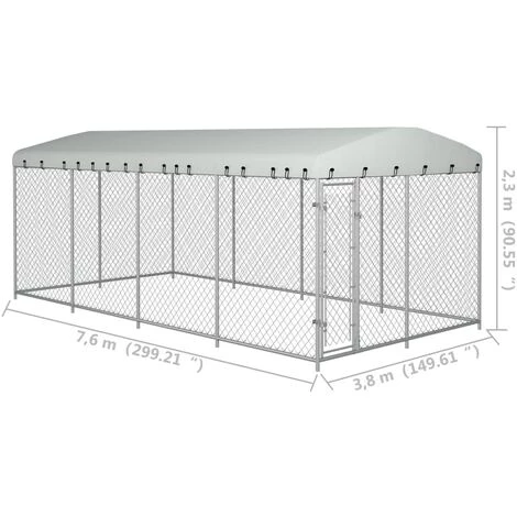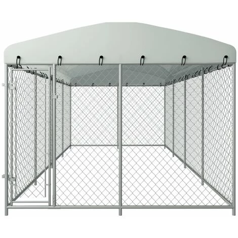Ce grand chenil pour chiens offre amplement d’espace pour faire de l’exercice, tandis que le maillage en mailles tout autour aide à prévenir les méfaits et les accidents inattendus, tout en permettant la ventilation. Grâce à la construction en acier galvanisé solide et robuste, ce chenil de haute qualité pour chiens est durable et construit pour durer. Le toit supérieur inclus, fait de 100 % polyéthylène, est ignifuge et protégé contre les rayons UV, offrant une protection contre le soleil, la pluie, la neige et d’autres conditions météorologiques. La porte à charnière assure une sécurité supplémentaire pour vos chiens grâce au système de loquet de verrouillage. Il est facile à assembler.