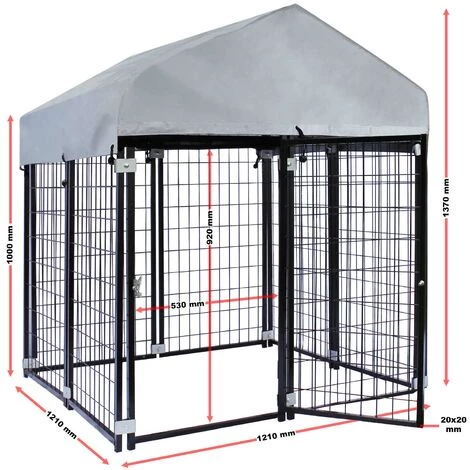 Chenil avec Toiture 121x121x137cm Enclos extérieur pour chien en Acier