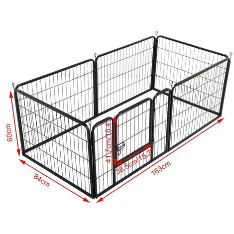 Cette clôture en métal de haute qualité convient aux chiens, aux canards et aux lapins, etc. Il est facile à installer sans outils. Il peut être utilisé en intérieur ou en extérieur. Vous pouvez le configurer en forme de rectangle ou d’hexagone.